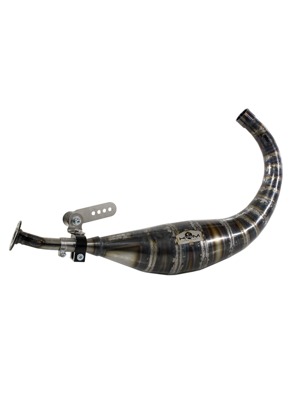 KRM vous propose ici son pot d'échappement 70-80cc pour Minarelli AM6 (sans silencieux).
