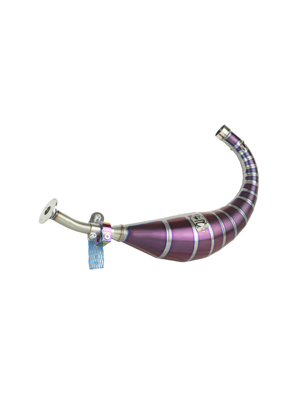 KRM vous propose ici son pot d'échappement 90-100cc titane pour moteur Minarelli AM6 (sans silencieux).