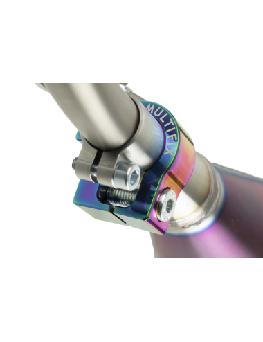 Les échappements KRM pro ride titane sont entièrement fabriqués manuellement (formage et soudage) ce qui rend chaque pièce unique dans son aspect. Ils sont constitués de multiples tronçons découpés, formés, puis assemblés par soudage au TIG. Les modèles aux finitions colorées sont pourvus d’un traitement décoratif qui peut légèrement évoluer dans son aspect à cause de fortes températures, lorsqu’ils sont utilisés.