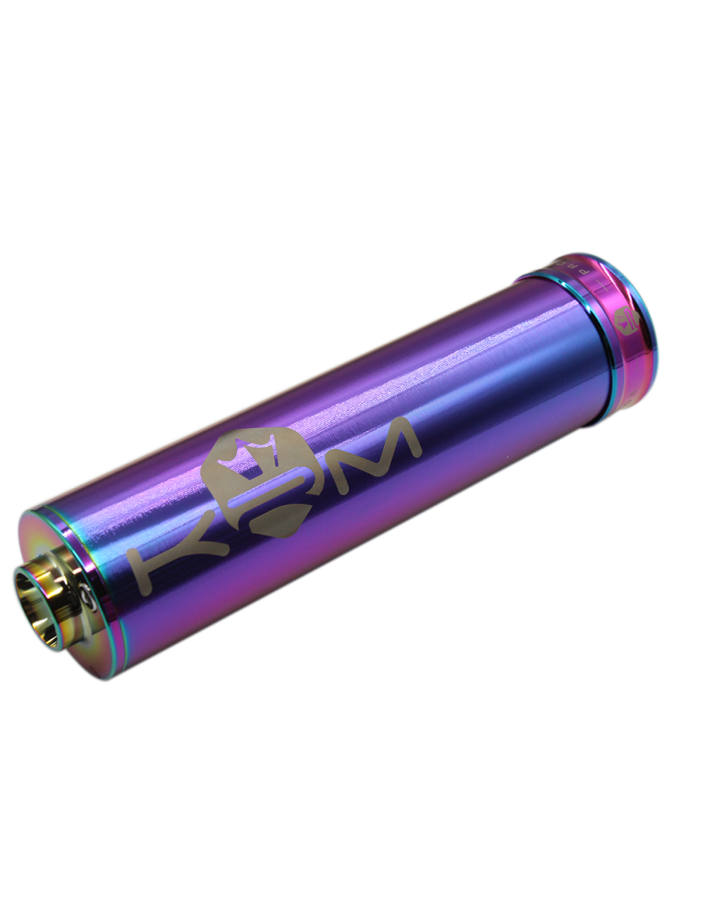 Le silencieux fait un diamètre extérieur de 60 mm pour une longueur totale de 230 mm. Léger et compact ce produit est abouti puisque tous les composants sont anodisés afin d’offrir un beau rendu et les décorations sont quant à elles réalisés sur machine laser ce qui offre une très bonne longévité dans le temps.