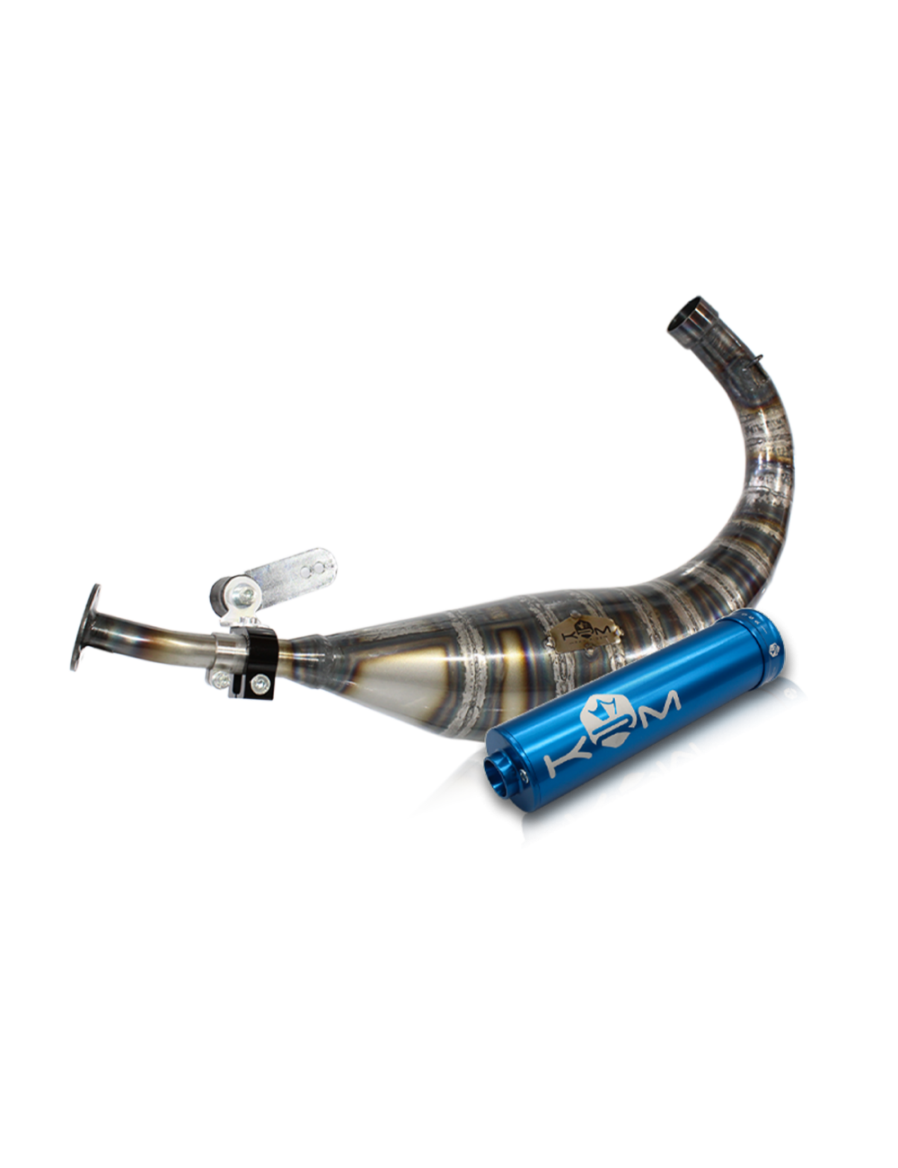 KRM vous propose sa ligne d'échappement 90-100cc pour Minarelli AM6 avec son silencieux full bleu.