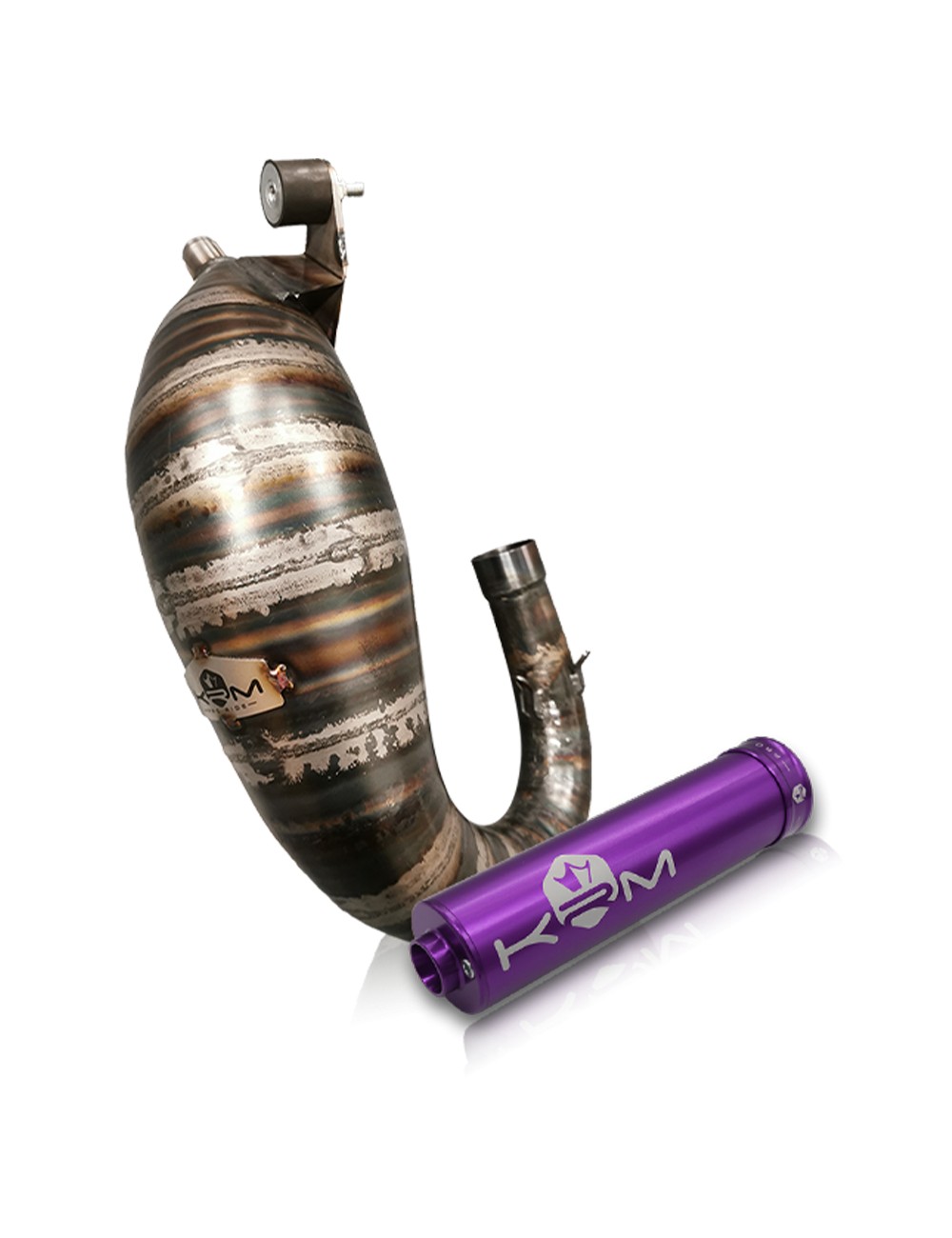Le pot d'échappement KRM 80-90cc pour moteur AM6 est constitué de 17 pièces en tôle d'acier d'épaisseur 0.8 mm. Sa technique de fabrication est entièrement manuelle, chacune des pièces sont roulées puis soudées bord à bord au chalumeau avant d'être façonnées manuellement au marteau dans les ateliers KRM. Le pot KRM 80-90cc est très puissants et prévu pour de grosses configurations. Il est destiné à une utilisation en compétition run ou piste uniquement. Il est l’aboutissement de mois de travail au banc d’essais afin offrir la meilleure des performances.