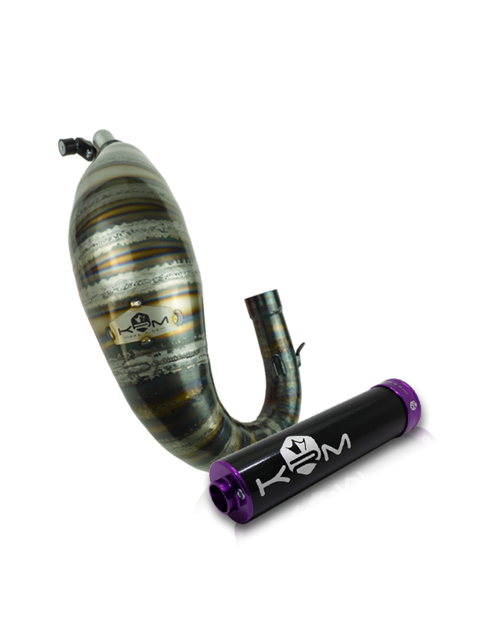 Le pots KRM est livré sans silencieux afin de permettre au client de choisir la couleur qui ira le mieux avec sa machine. Néanmoins, afin d’obtenir le maximum de puissance, il est indispensable d’utiliser un silencieux KRM 80-90cc à partir duquel la marque a développé le pot.