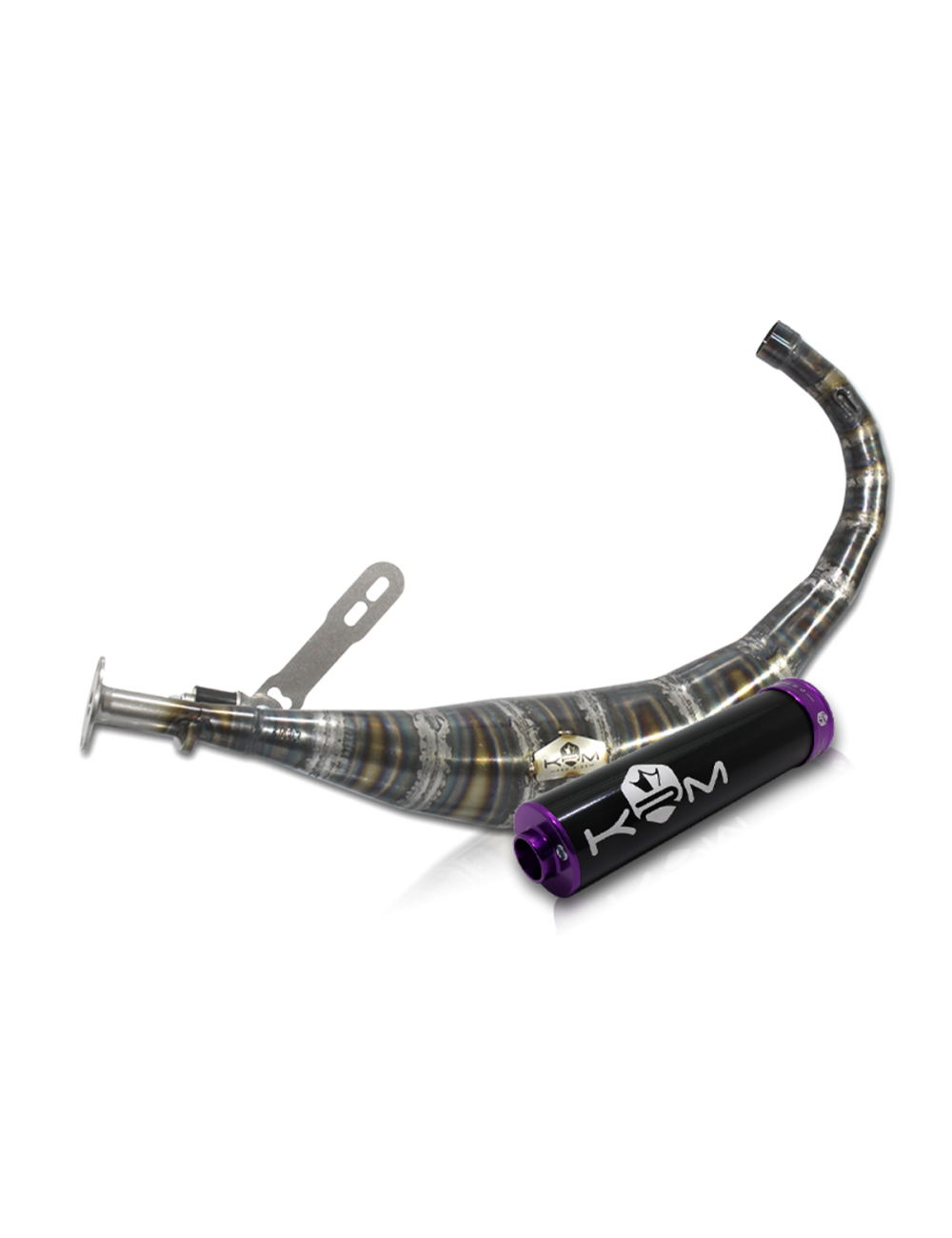 KRM vous propose sa ligne d'échappement 50cc pour moteur Minarelli AM6 avec silencieux violet.