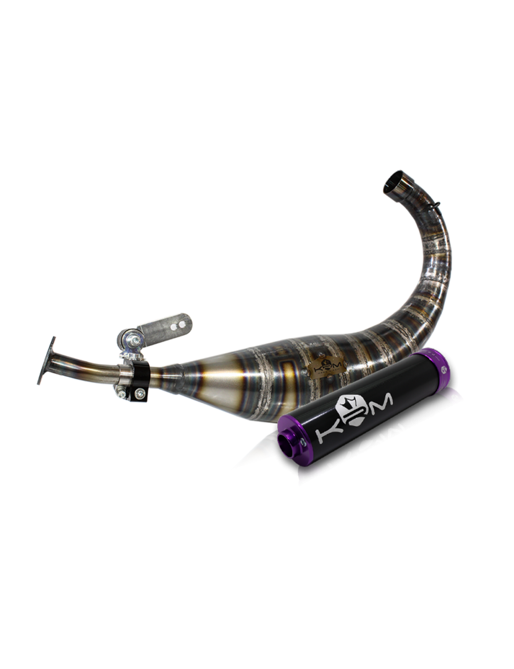 KRM vous propose sa ligne d'échappement 90-100cc pour Derbi avec son silencieux noir/violet.
